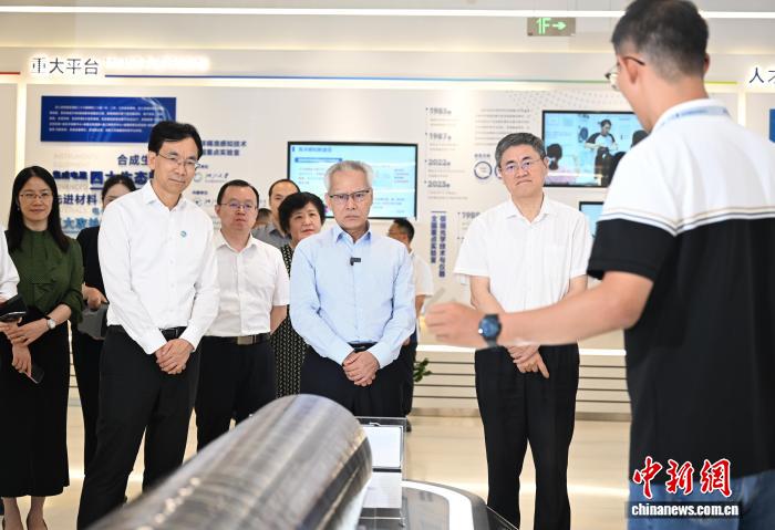 8月16日,岑浩辉(左3)等人正在浙江年夜教邦际科创重心观光。当日,澳门出格止政区止政少民岑浩辉率团拜候浙江杭州,正在浙江年夜教邦际科创要旨观光领会科技结果。中新社记者 王刚刚 摄