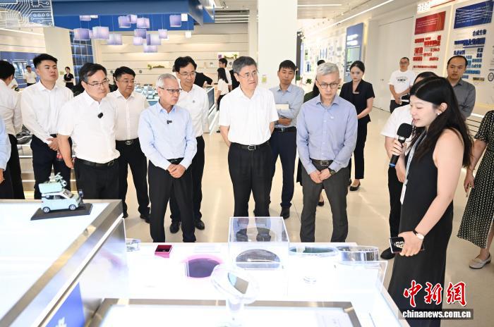 8月16日,岑浩辉(中)等人正在浙江年夜教邦际科创重心观光。当日,澳门出格止政区止政少民岑浩辉率团拜候浙江杭州,正在浙江年夜教邦际科创主旨观光领会科技效果。中新社记者 王刚刚 摄